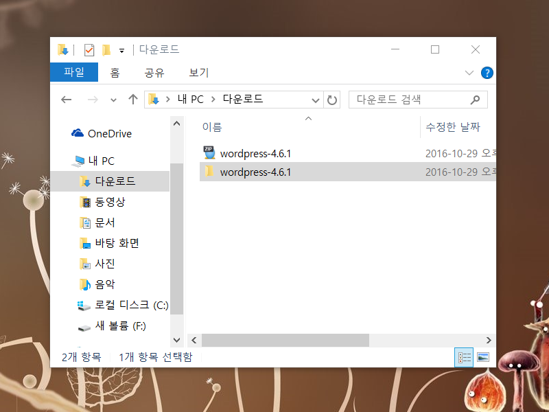2)다운로드한 워드프레스 압축파일을 압축풀기합니다.