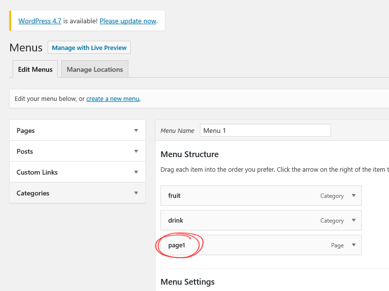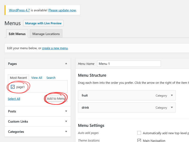 워드프레스(wordpress)에서 메뉴 추가하기(menus)