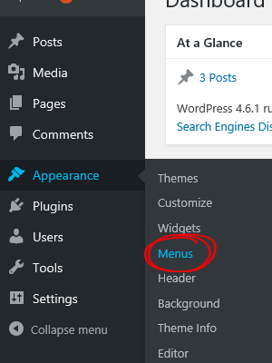 5)대시보드에서 appearance의 menus를 선택합니다.