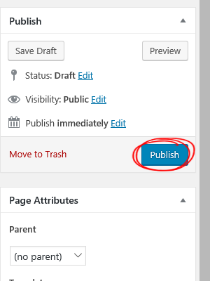 3)우측의 publish를 클릭하면 페이지(page)를 발행합니다.