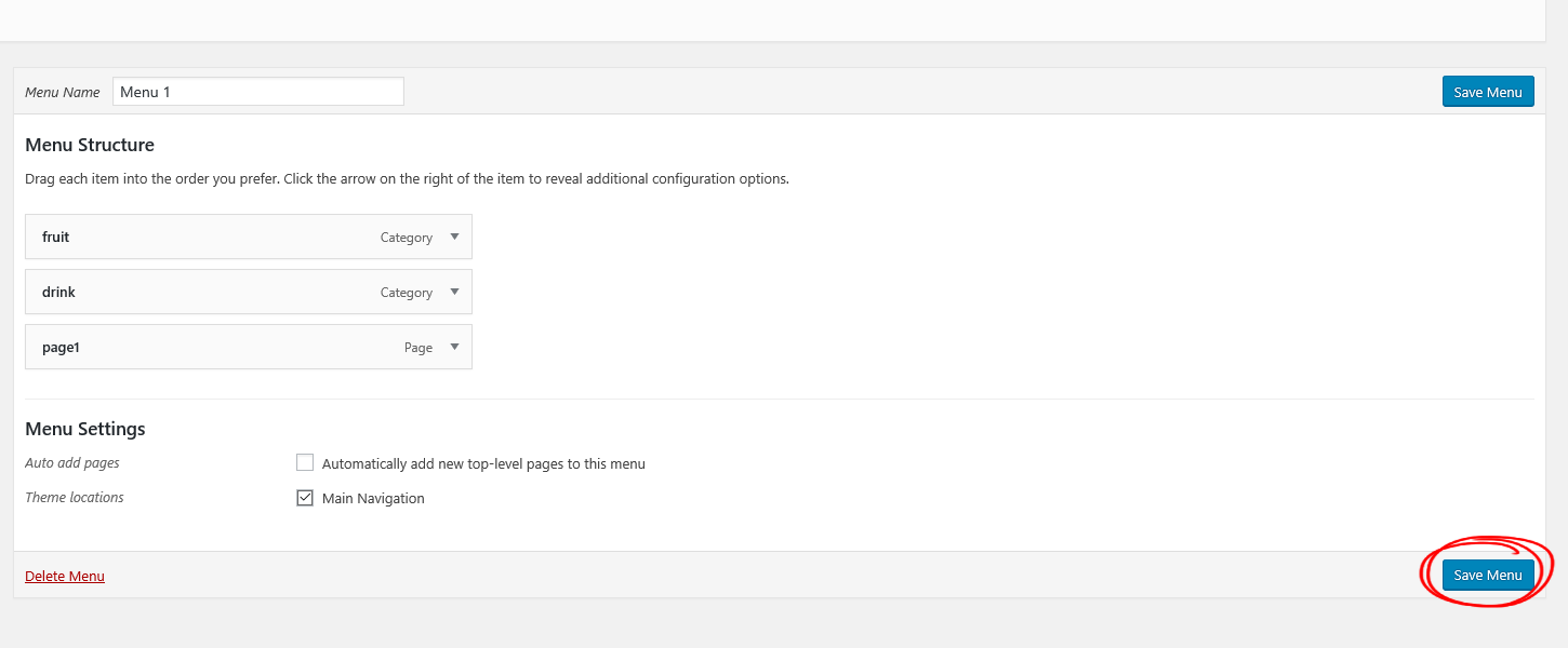 9)최종적으로 메뉴에 추가할 항목들을 확인하고 save menu를 클릭해서 적용합니다.