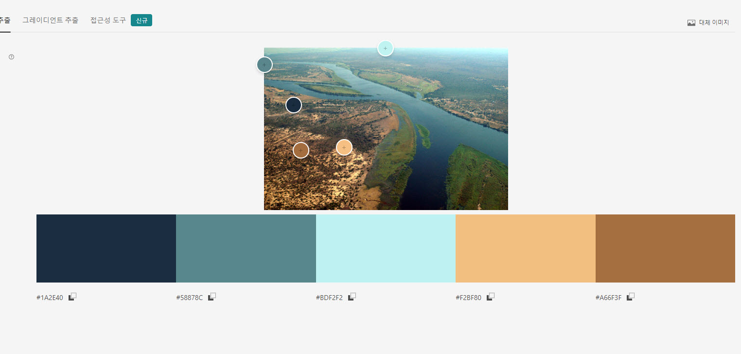 4)이미지 업로드가 완료되면 자동으로 이미지에서 추출한 5가지의 샘플 컬러를 표시합니다.