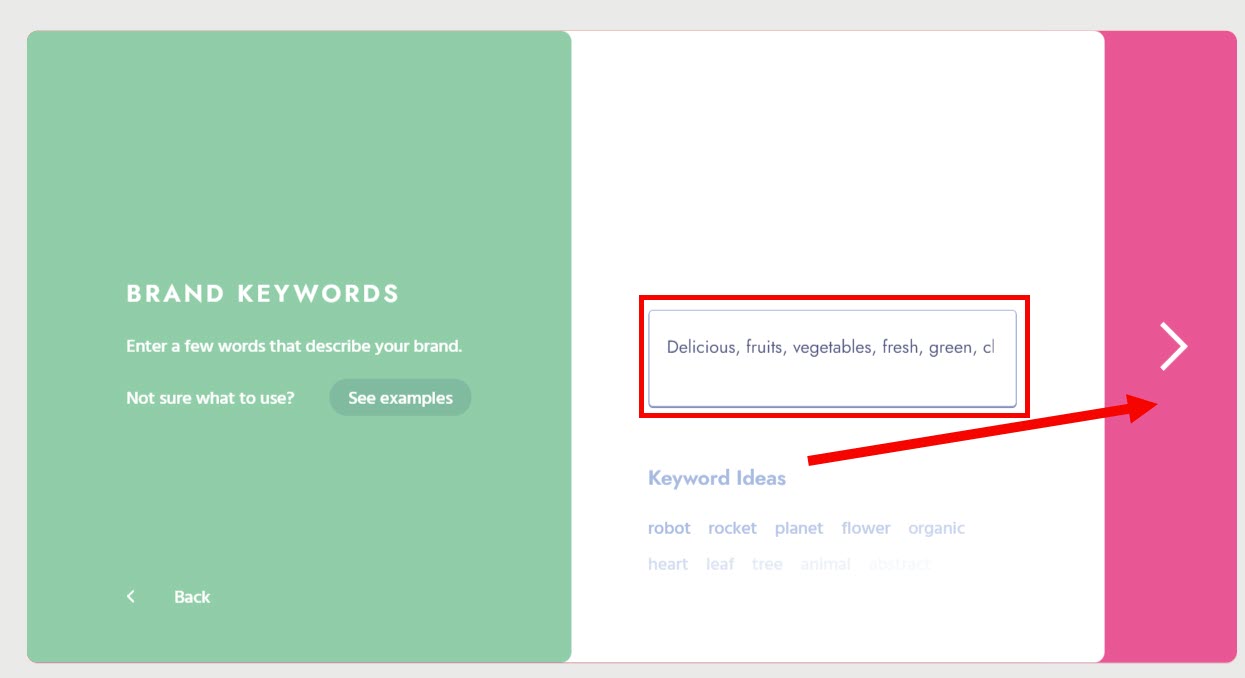 3)브랜드 키워드(brand keywords)를 입력하고 다음으로 이동합니다.