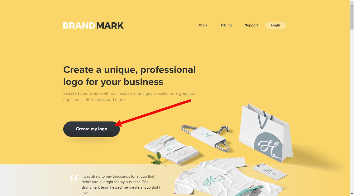 1)Brandmark 웹사이트에서 create my logo를 클릭합니다.