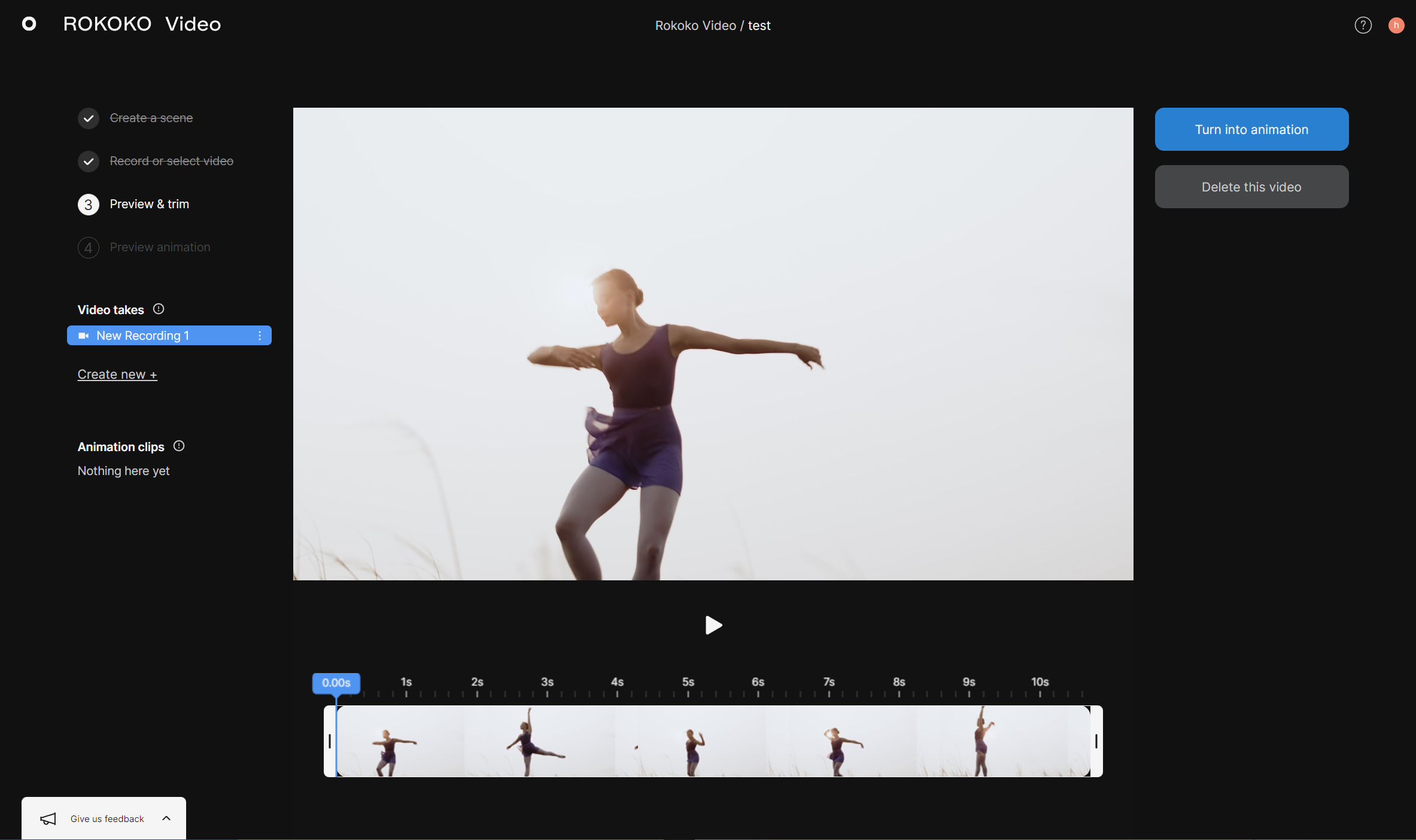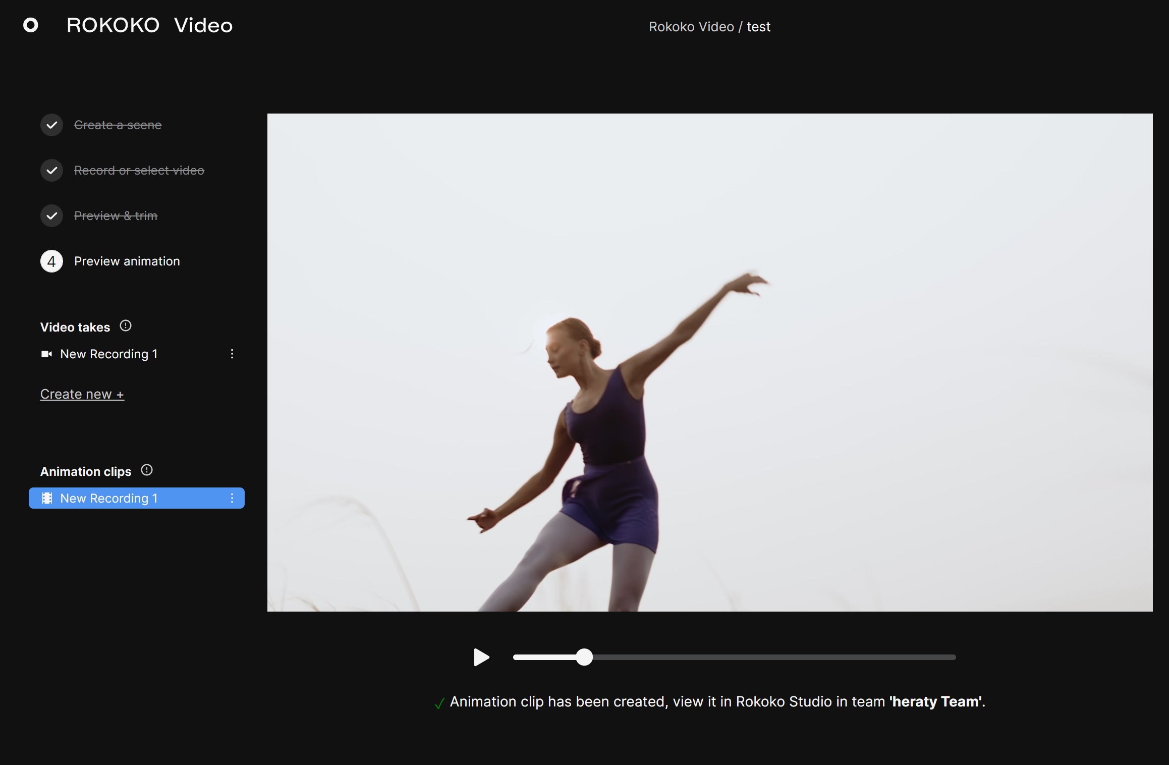 Rokoko video를 사용하여 동영상의 사람 움직임을 캡처하고 애니메이션 클립 생성하기