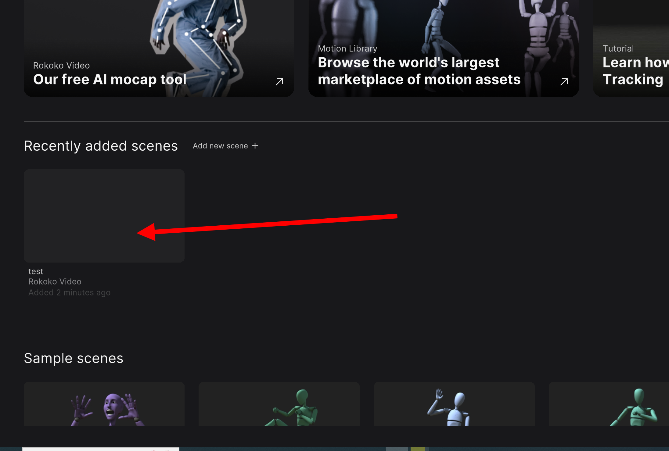 3)rokoko video 웹사이트에서 create new scene을 선택합니다.