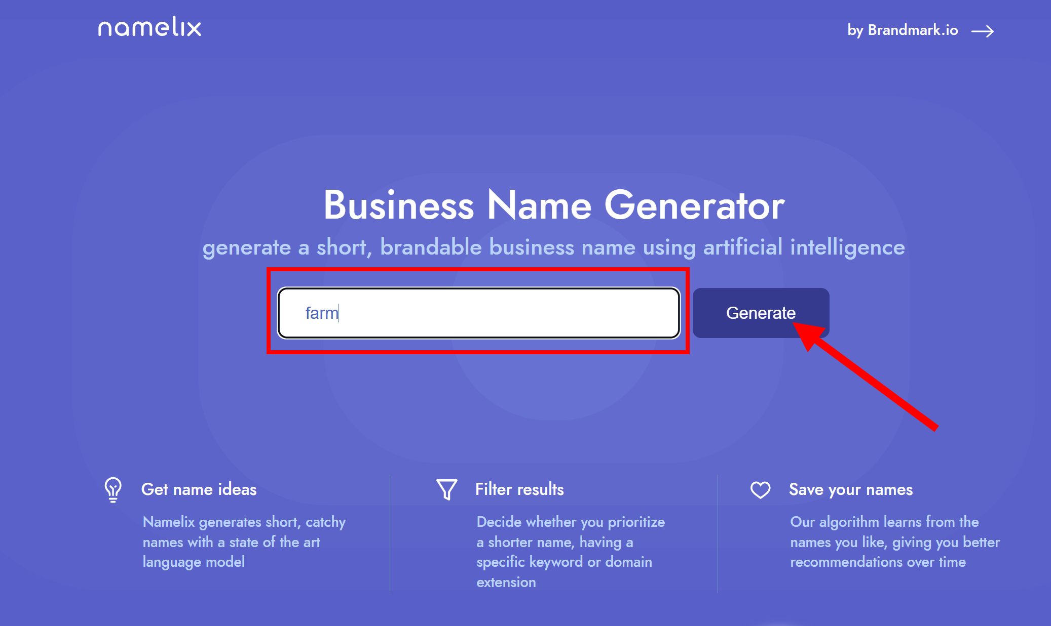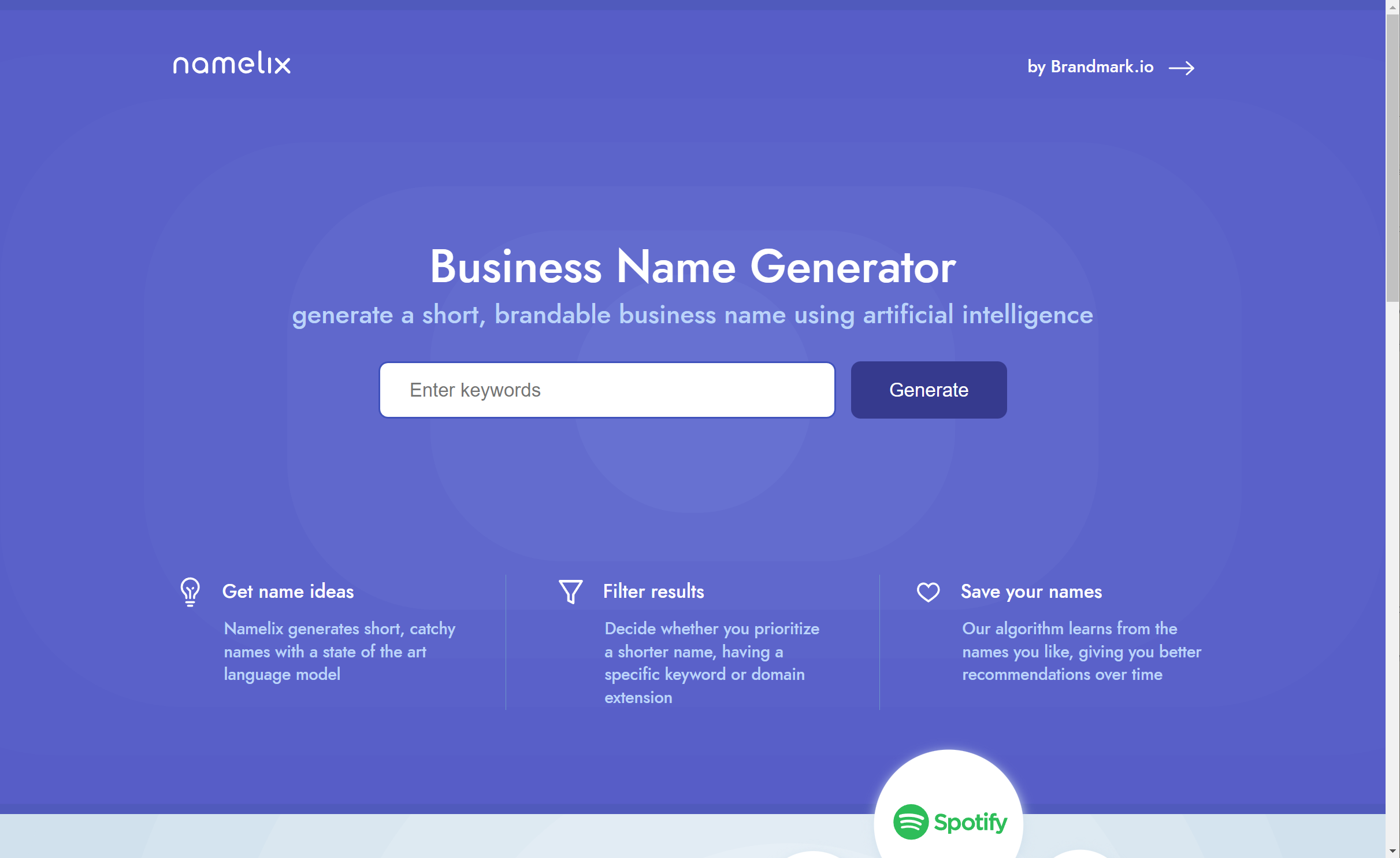 namelix - 자동으로 브랜드명을 생성해주는 웹사이트