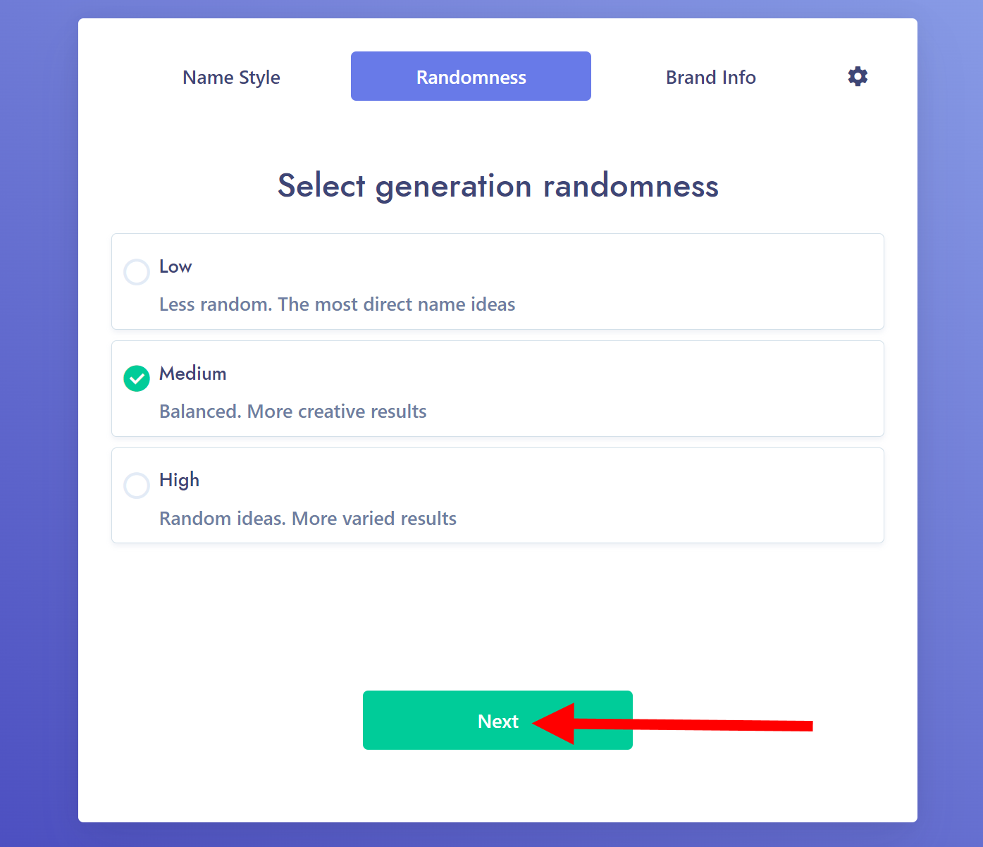 4)무작위성을 선택하고 다음으로 이동합니다.