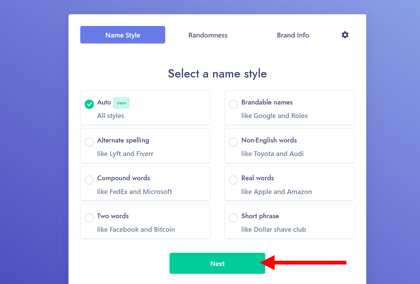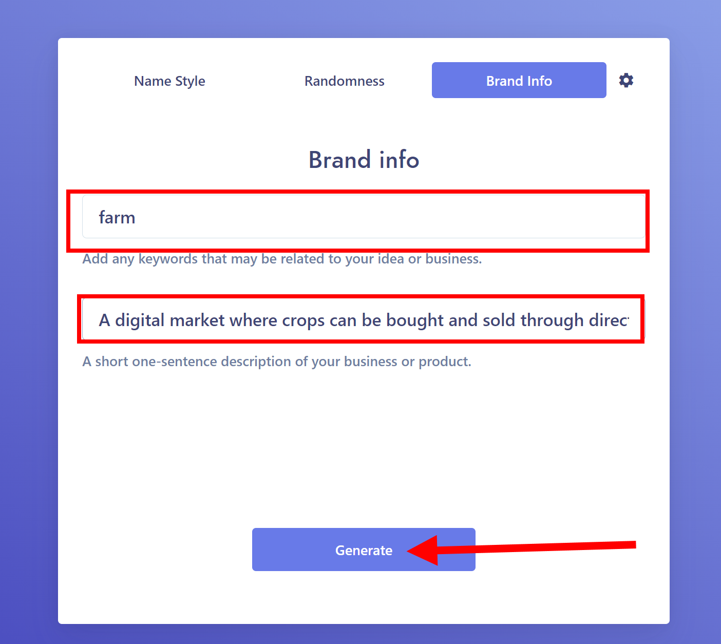 키워드와 브랜드 정보를 입력하면 자동으로 브랜드명을 생성해주는 웹사이트