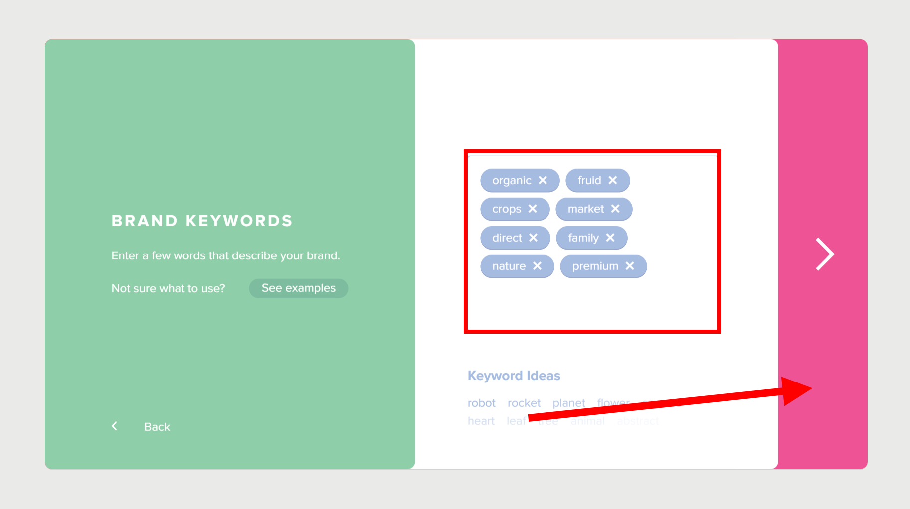 3)브랜드를 설명할수있는 키워드를 입력하고 다음으로 이동합니다.