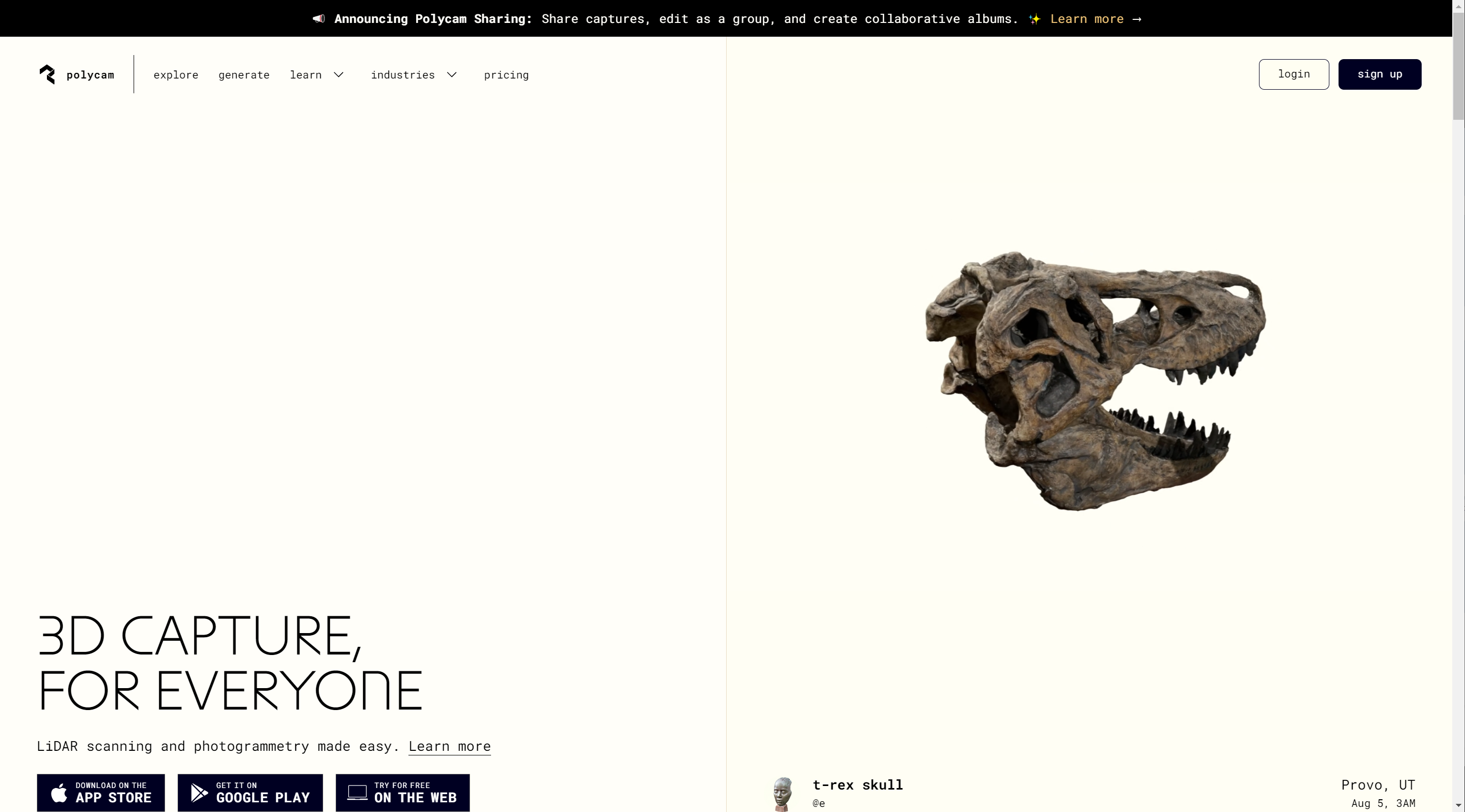 폴리캠은 아이폰 및 안드로이드에서 사용가능한 3D 캡처 및 스캐닝 프로그램으로 사진을 촬영하고 고품질 3D모델을 생성하거나 라이다 센서를 사용하여 공간을 스캔할수있습니다. 생성한 모델은 다양한 형식의 파일로 내보내기 가능합니다.