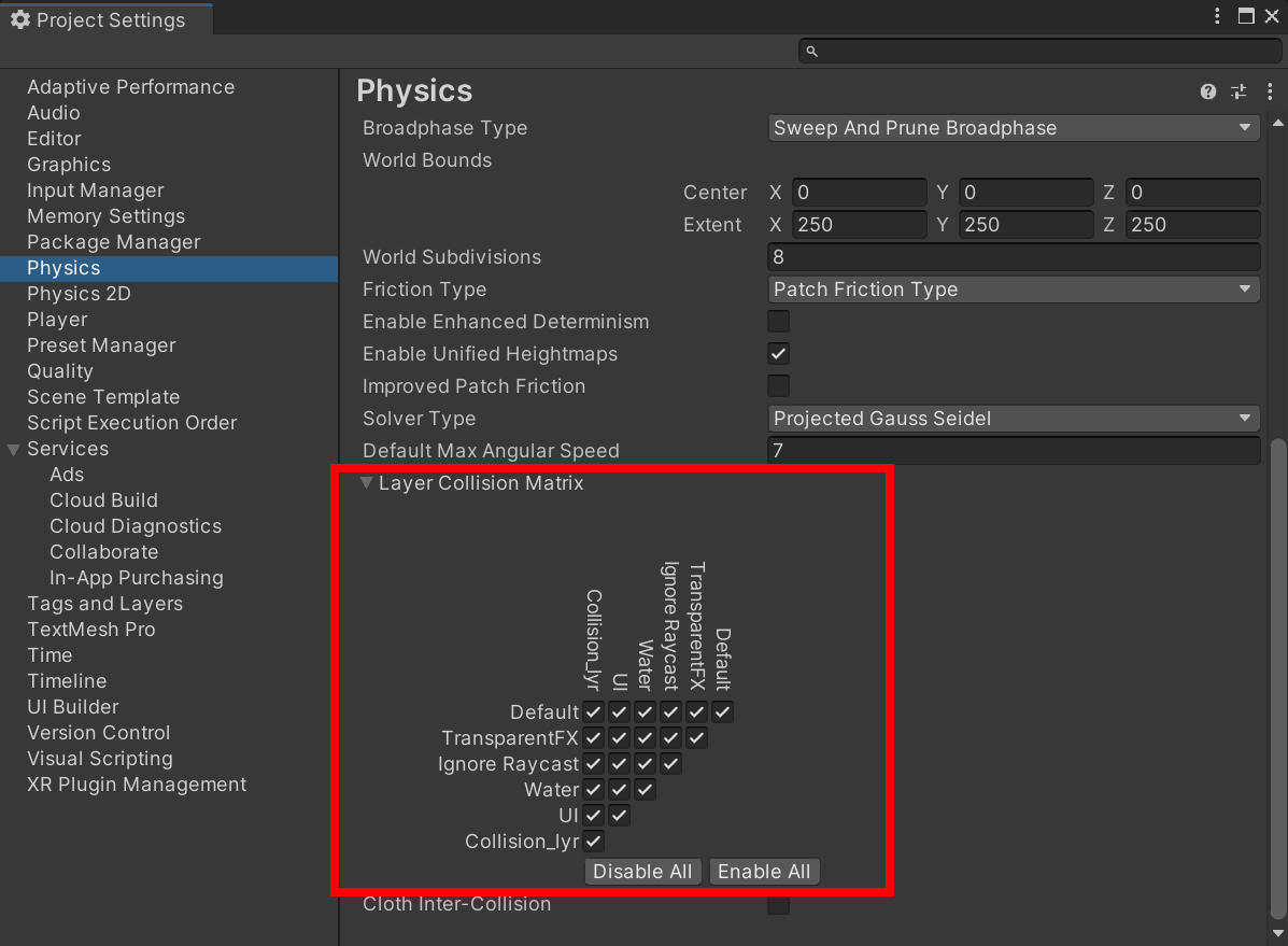 유니티에서 콜라이더 충돌 레이어 관리하기(collision matrix)