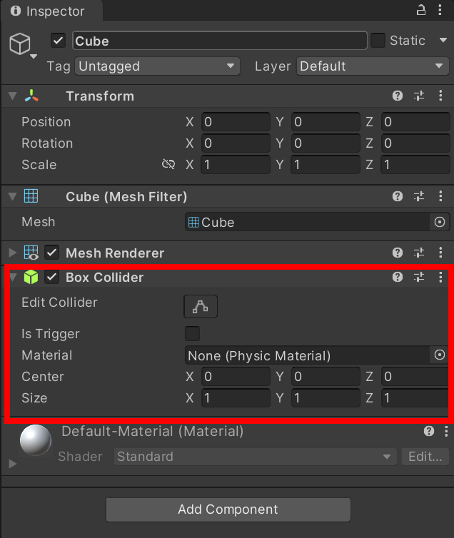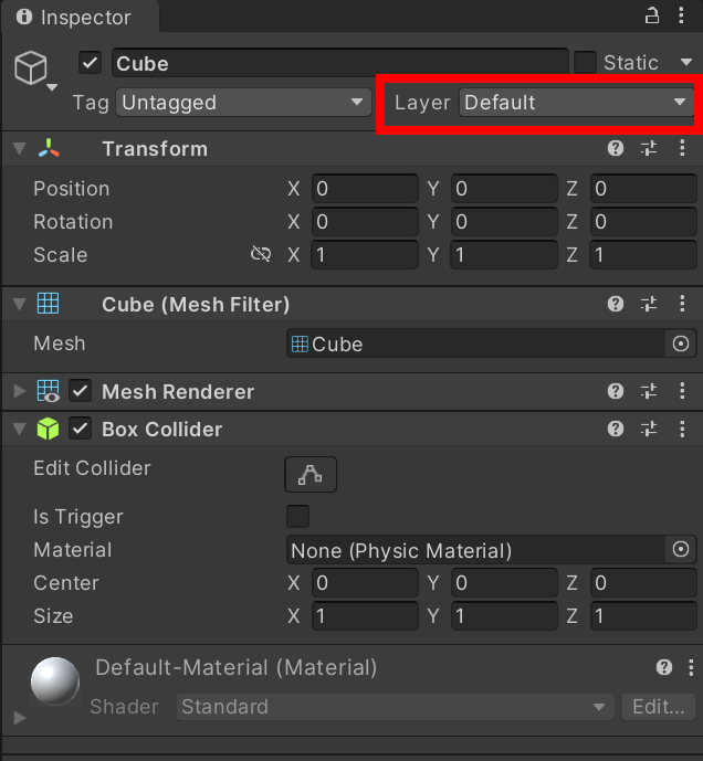Default 레이어 레이어의 콜라이더는 Collision_lyr 레이어를 제외한 모든 다른 레이어의 콜라이더와 충돌 감지