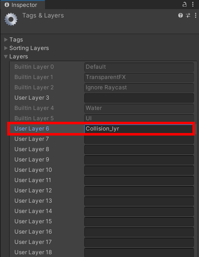 11)두 오브젝트중 하나의 레이어를 Collision_lyr로 설정하면 두 콜라이더의 충돌 감지에서 제외합니다.
