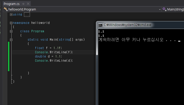 C# 프로그래밍 예제- Console.WriteLine 함수 사용 값 출력