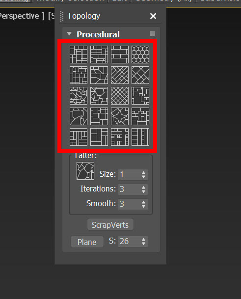 5)패턴을 클릭하면 선택한 오브젝트에 해당 패턴의 토폴로지를 재구성합니다.