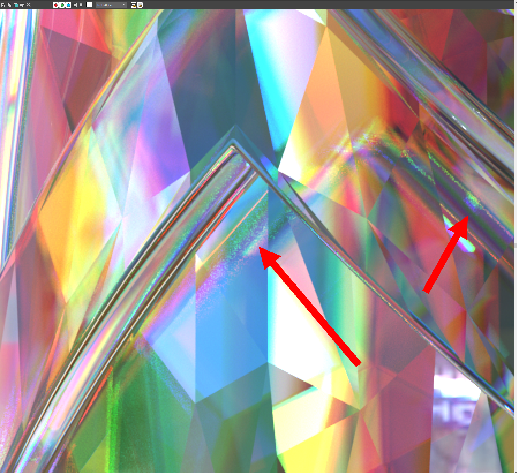 1)렌더링한 이미지의 일부분에서 노이즈를 확인할수있습니다.