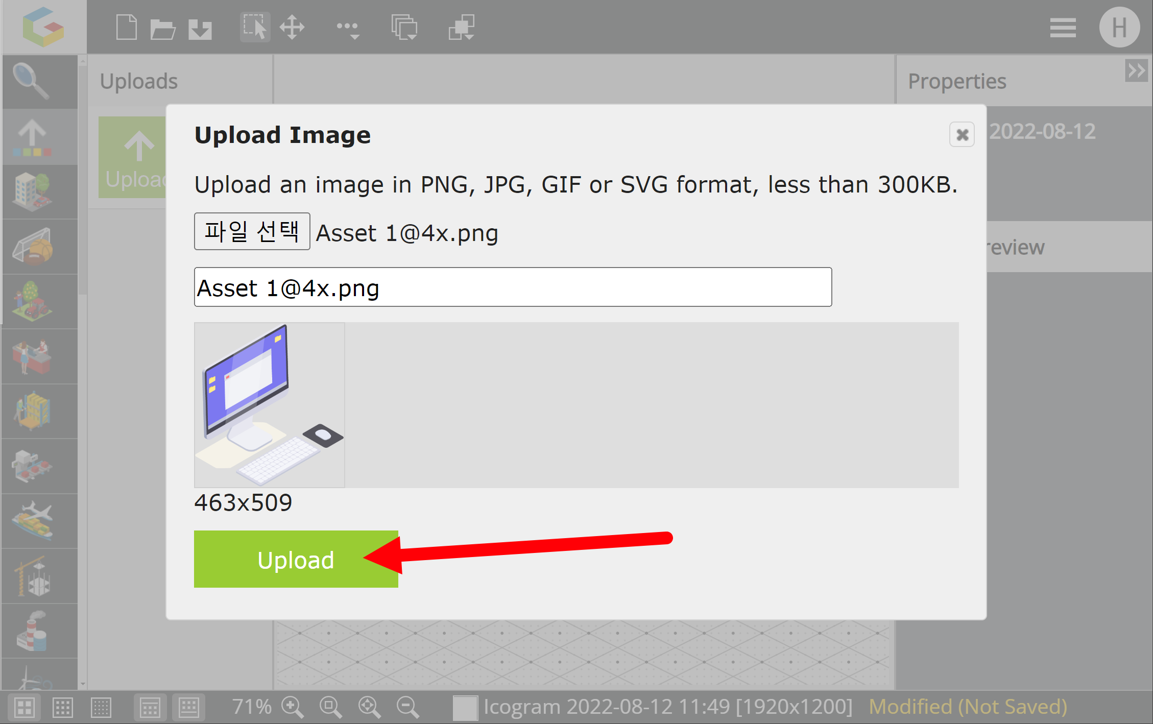 사용자 이미지 및 아이콘을 업로드하고 사용하는 방법입니다. 무료 이용의 경우 업로드해서 사용할수있는 이미지의 개수 제한이 있습니다.