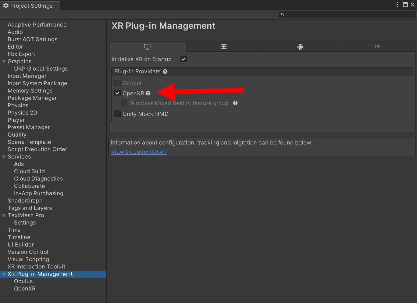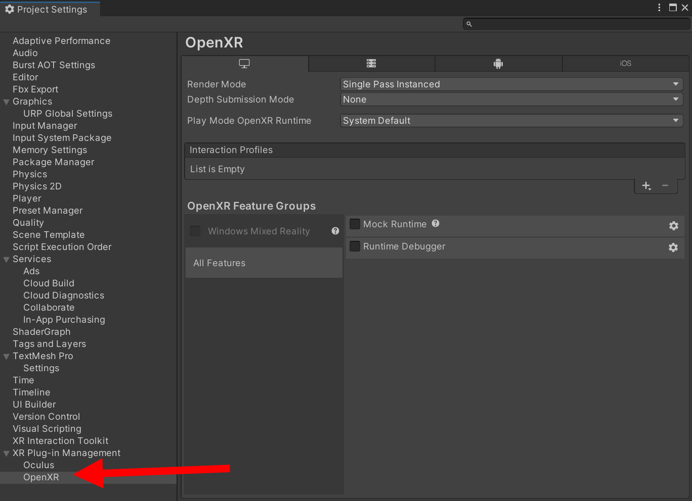 3)XR Plug-in management의 OpenXR로 이동합니다.