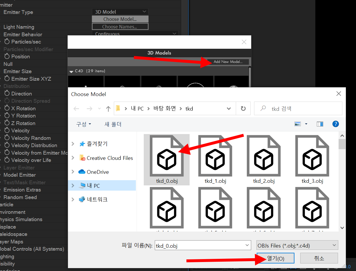 6)add new model을 클릭하고 준비한 obj 시퀀스의 파일을 열기합니다.