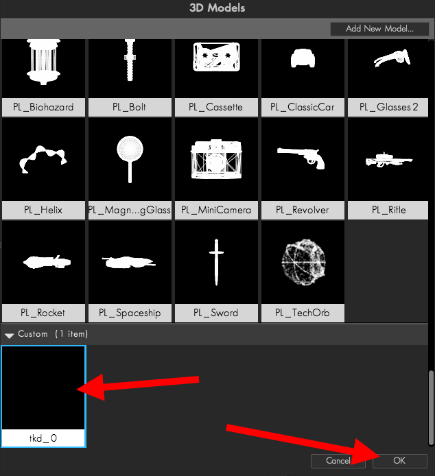 7)3D Models의 custom에 사용자 3D 모델이 추가된것을 확인할수있습니다. 모델을 선택하고 확인합니다.