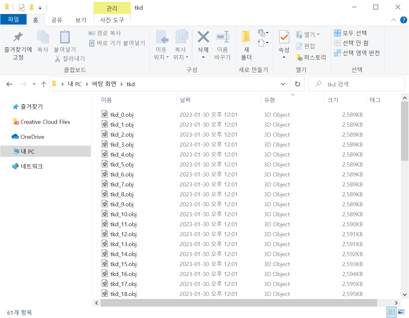 1)3D애니메이션 모델의 obj 시퀀스를 준비합니다.