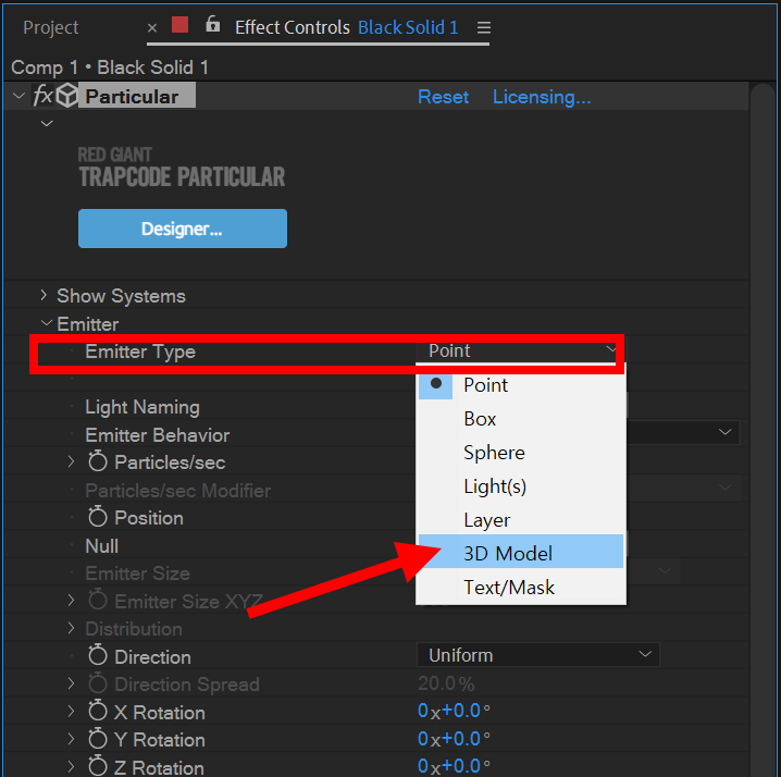 RG Trapcode 플러그인의 particular 이펙트를 사용하여 사용자 3D 오브젝트에서 방출되는 파티클 애니메이션 만드는 방법