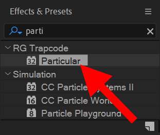 3)레이어에 RG Trapcode의 particular 이펙트를 추가합니다.