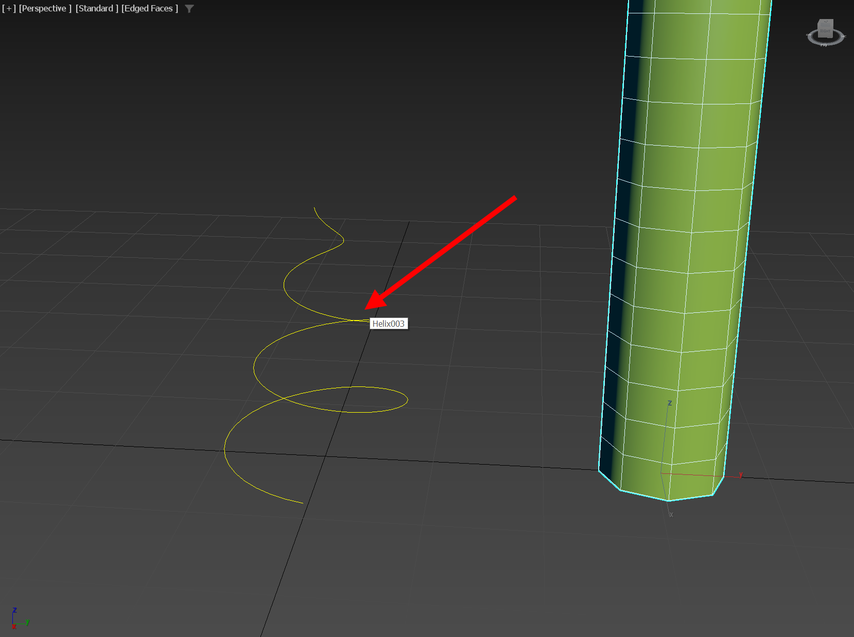 7)path에 helix 오브젝트가 설정된것을 확인할수있습니다. move to path를 클릭하면 cylinder 오브젝트를 path에 정렬합니다.
