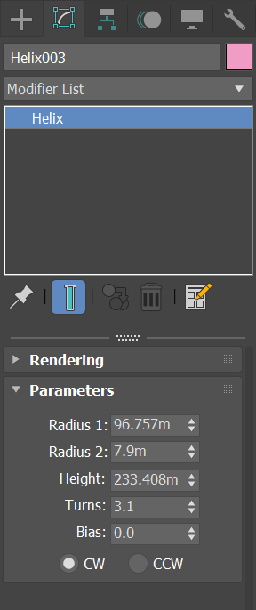 1)씬에 helix 오브젝트를 추가하여 나선형 스플라인을 생성합니다.