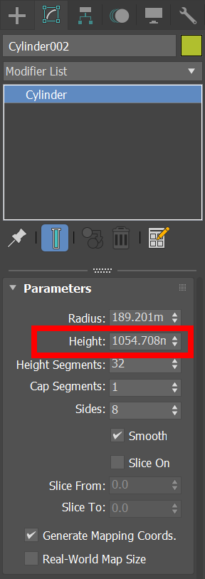 4)cylinder 오브젝트에 충분한 개수의 height segements를 설정합니다.