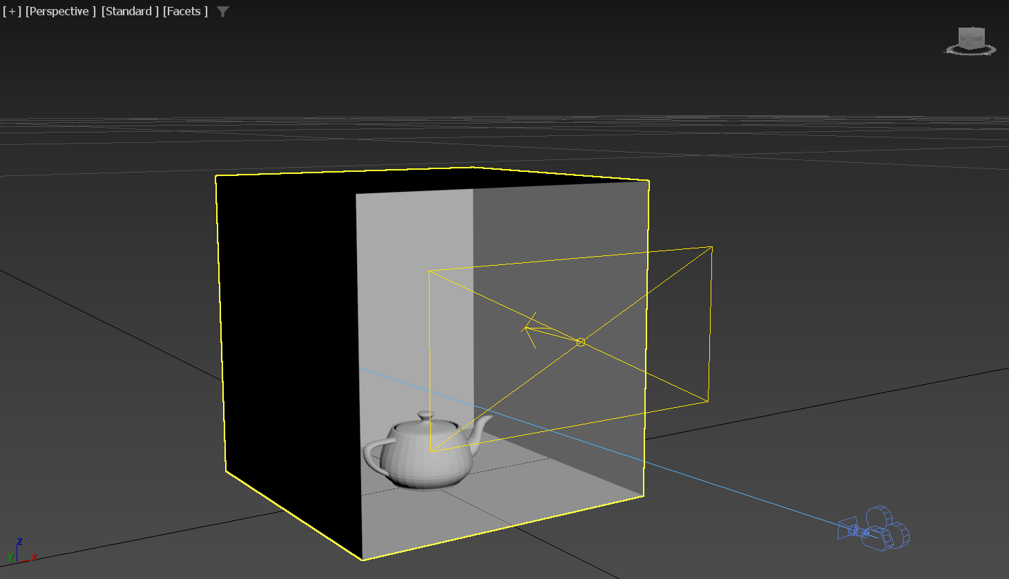 2)새로운 브이레이 재질(VRayMtl)을 생성하고 폴리곤 오브젝트에 할당합니다(box, teapot)
