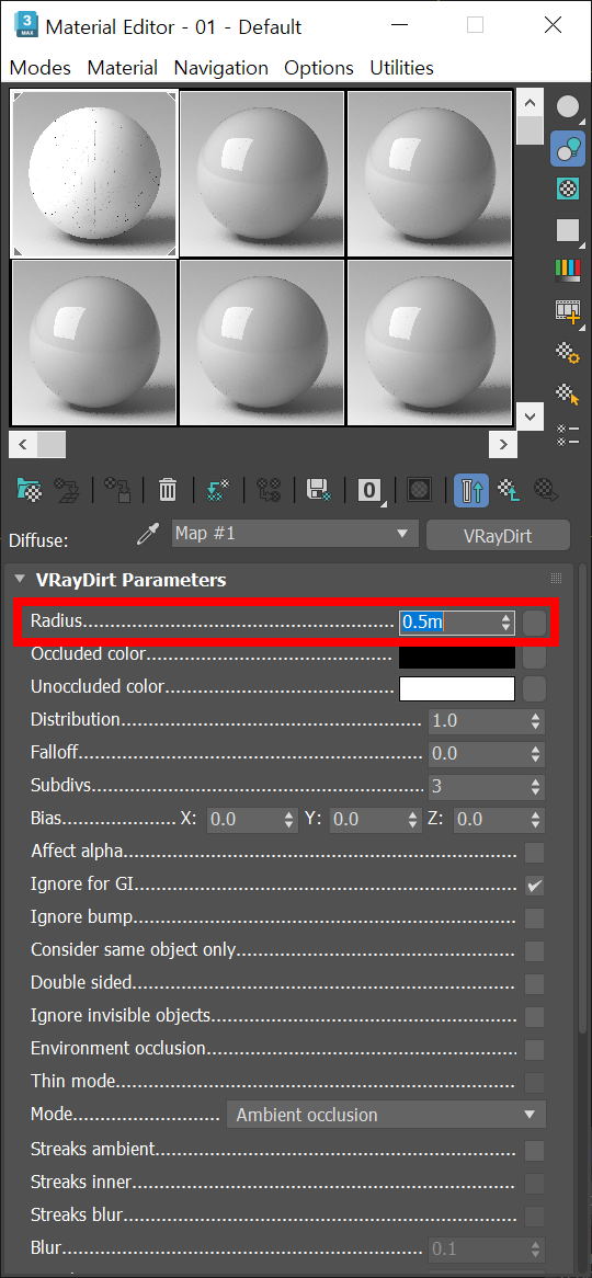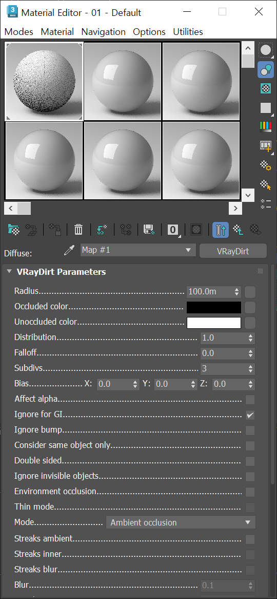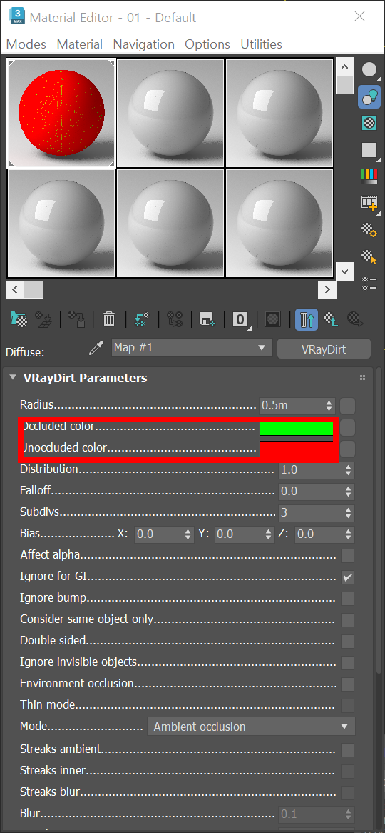 3D맥스 브이레이(v-ray)에서 VRayDirt 맵을 이용한 AO(ambient occlusion)