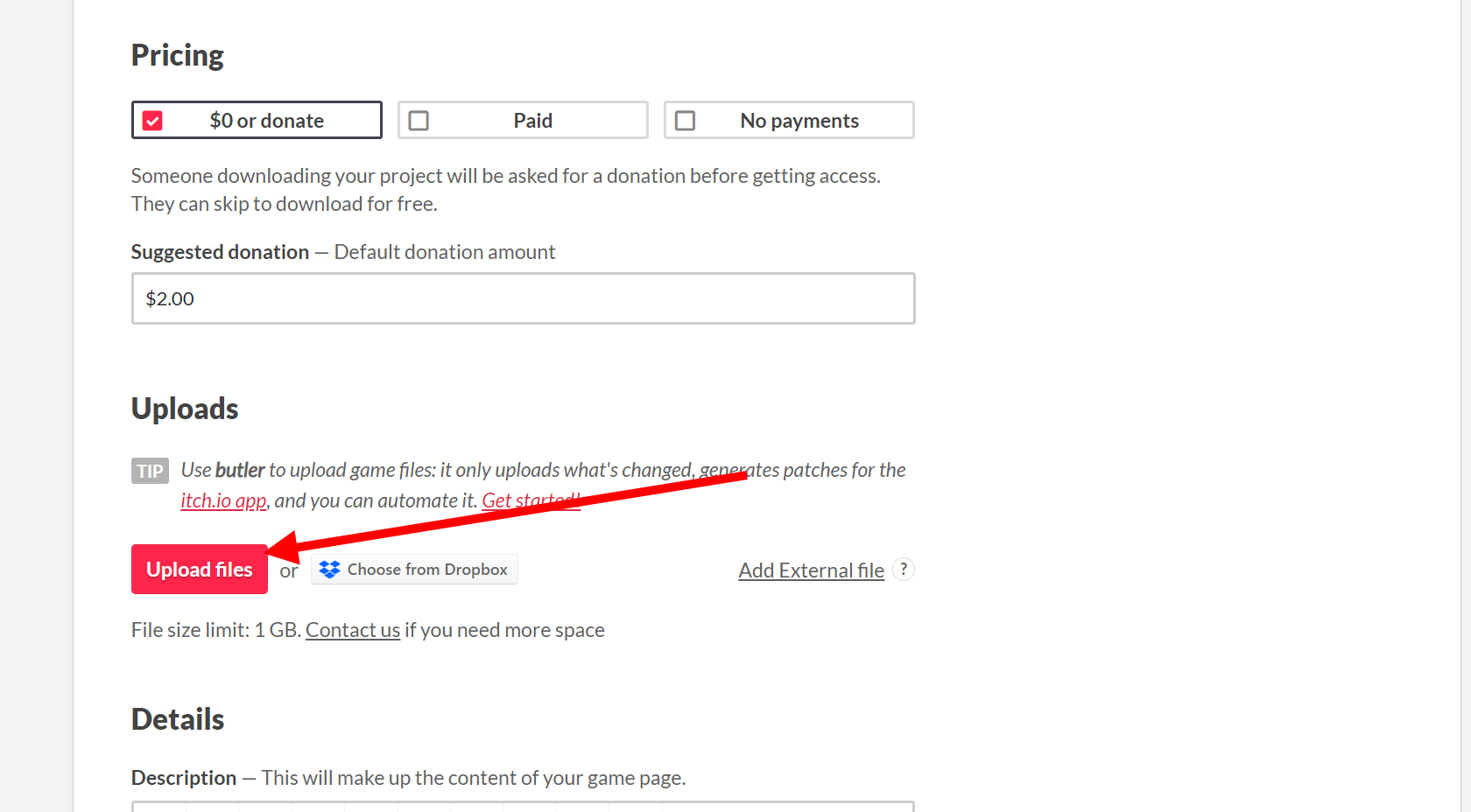 uploads의 upload files를 클릭해서 게임을 업로드합니다.