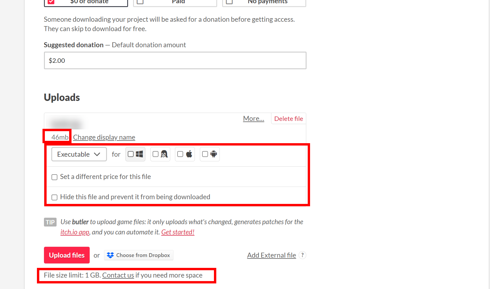 5)pricing에서 게임의 가격을 선택합니다. 무료 및 기부 옵션을 선택하려면 $0 or donate에 체크합니다.