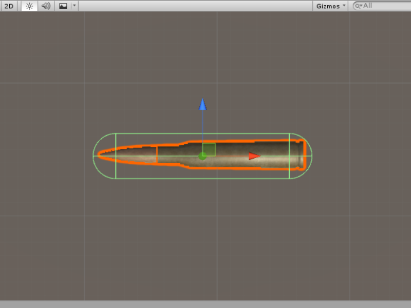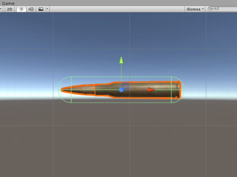 3)총알 모델의 오브젝트 로컬(local) 축을 확인합니다. z축이 모델의 측면 방향으로 설정되어있는것을 확인할수있습니다.