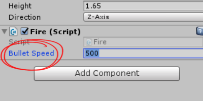 17)BulletSpeed의 수치를 입력하여 총알의 이동속도를 설정합니다.