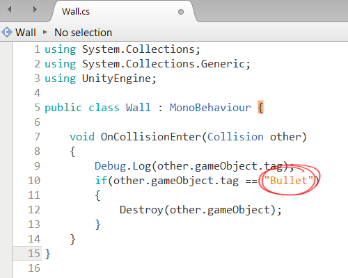 24)총알이 벽에 충돌하면 총알이 제거되고 콘솔 패널에서 총알 오브젝트의 태그가 출력된것을 확인할수있습니다.