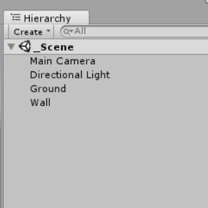 1)씬에 새로운 큐브(cube) 오브젝트를 생성하고 바닥(Ground)과 벽(Wall)을 구성합니다.