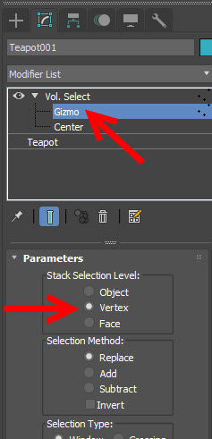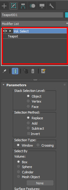 2)오브젝트에 볼륨 선택(vol.select) 수정자를 추가합니다.