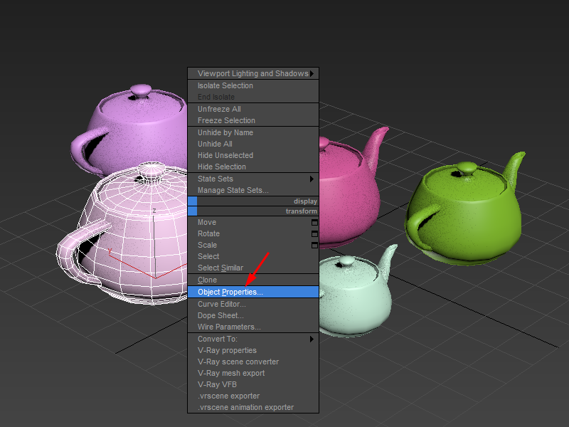 2)한개의 오브젝트를 선택하고 마우스 우클릭한후 Object Properties를 선택합니다.