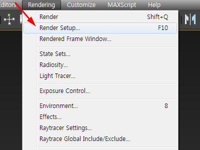 6)상단의 rendering 메뉴에서 render setup으로 이동합니다(단축키f10)