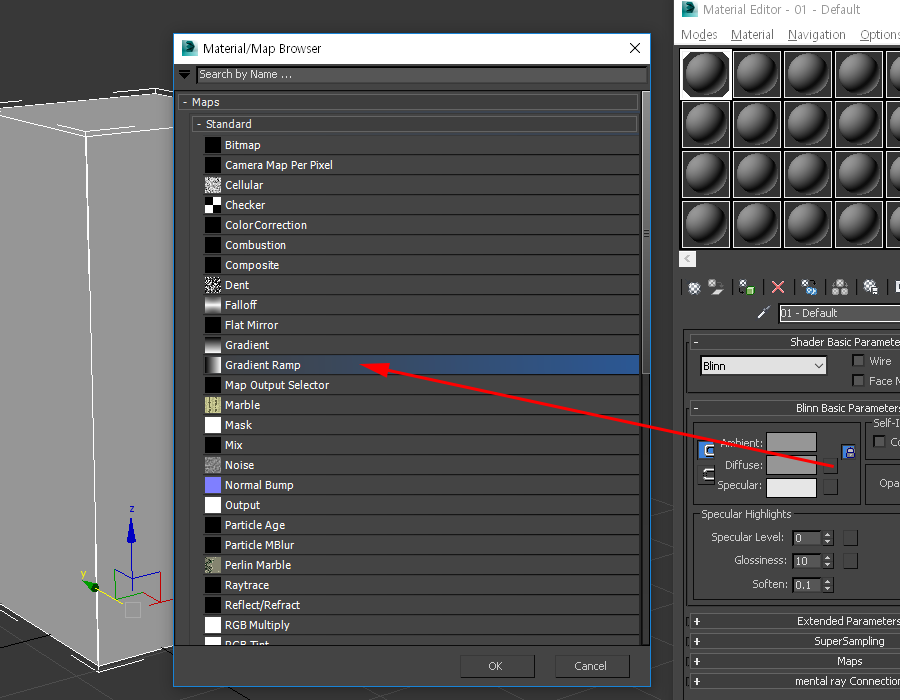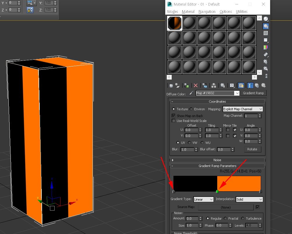 3D맥스에서 그라디언트 램프(gradient ramp)의 솔리드(solid) 색상사용하기