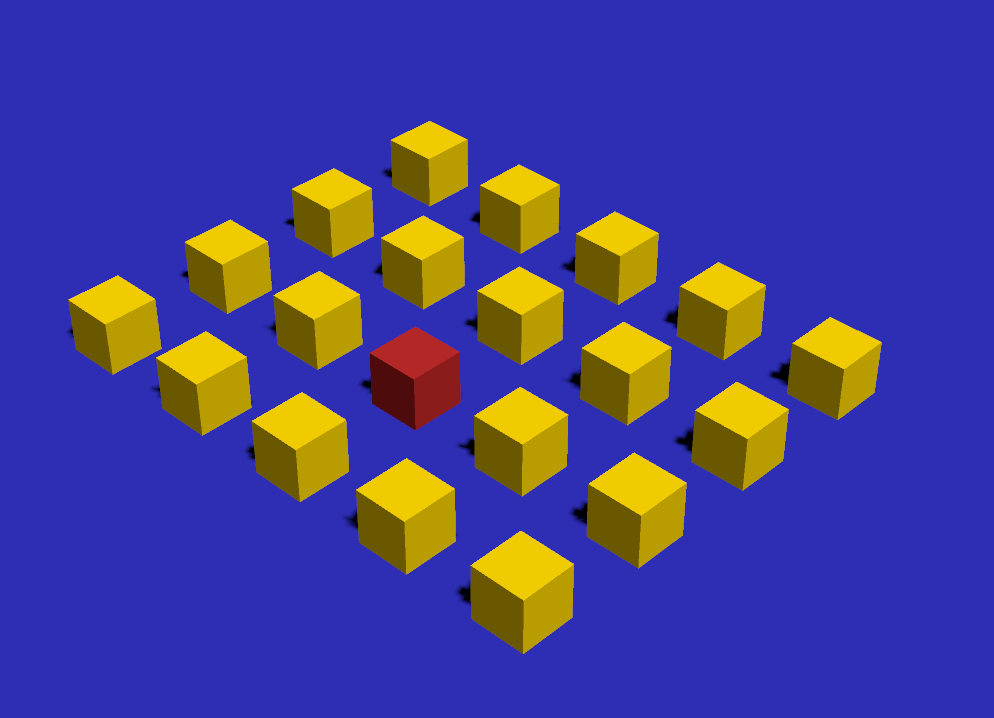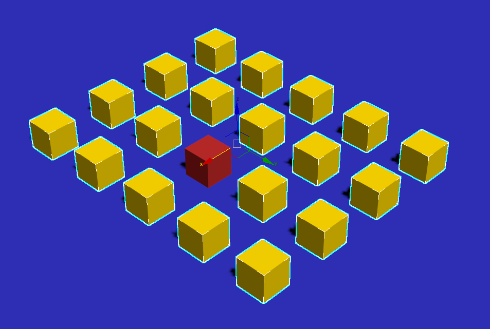 1)씬에서 오브젝트를 인스턴스 복사합니다. 예에서 빨간색 오브젝트를 제외하고 나머지는 인스턴스 복사한 오브젝트입니다.