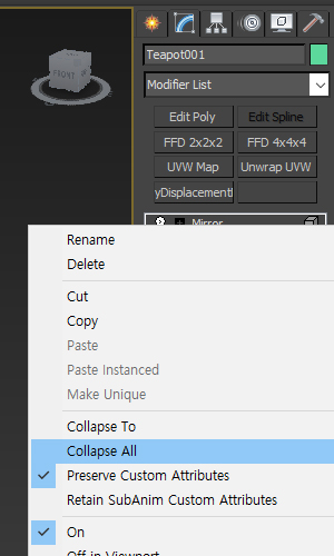 6)오브젝트의 Modifier stack에서 Collapse All를 선택합니다.