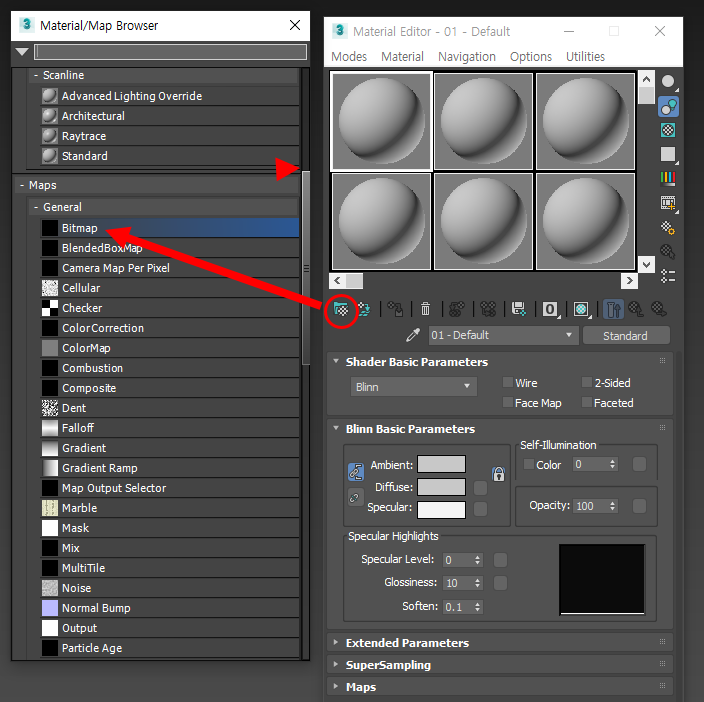 1)재질 편집기에서 새로운 비트맵을 생성합니다.