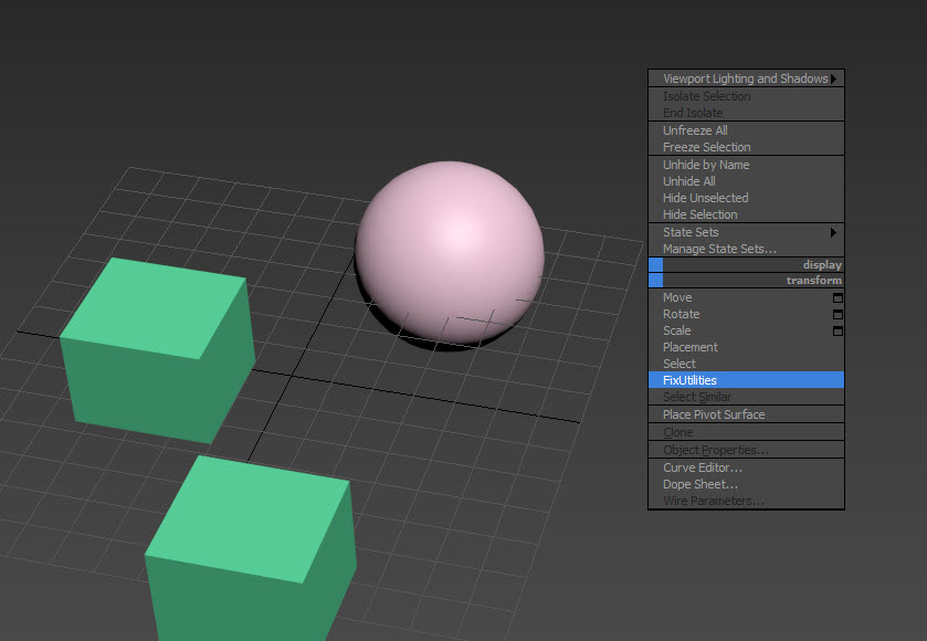 4)스크립트를 실행하려면 뷰포트에서 마우스 우클릭하고 fixutilities를 선택합니다.