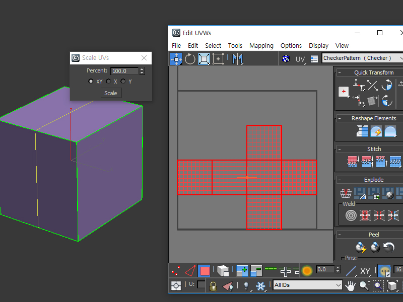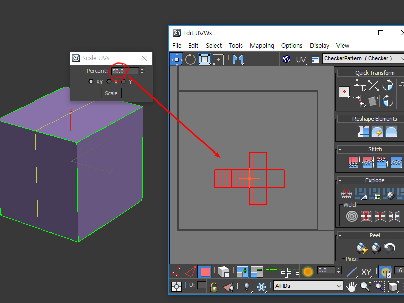 3D맥스 스크립트 Scale UVs를 사용하여 %수치를 입력해서 UV 스케일 줄이기