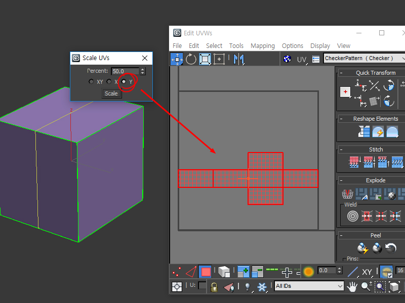 4)X, Y, XY 옵션을 사용하여 UV 스케일을 재조정합니다.