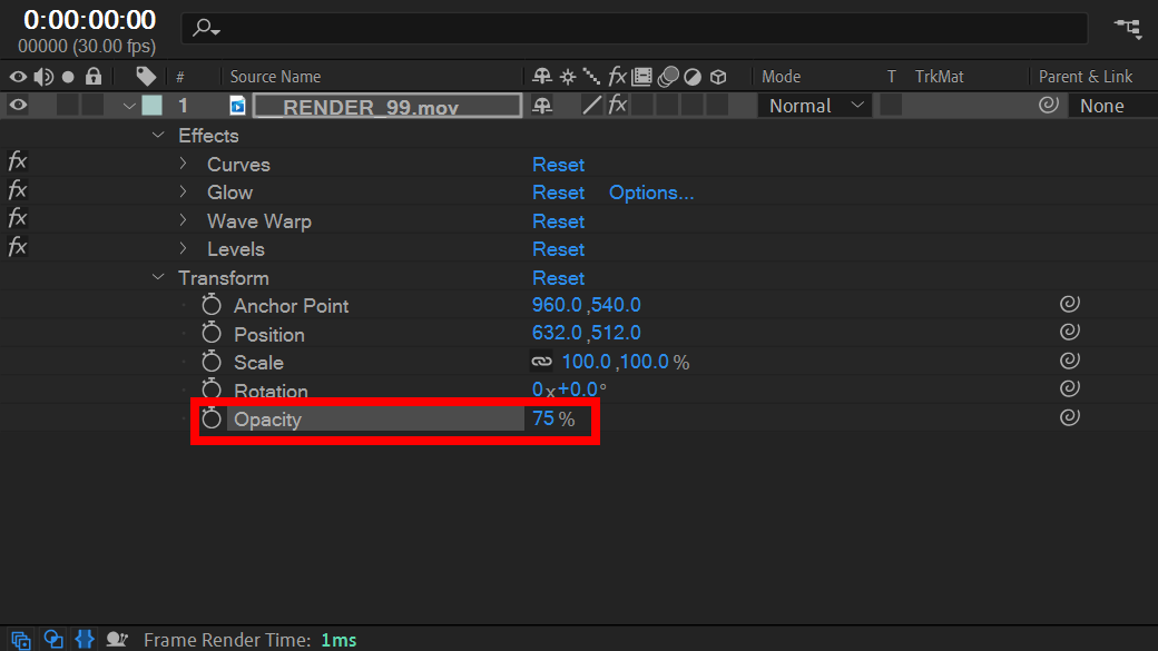 10)푸티지 및 동영상 레이어의 불투명도를 설정합니다(opacity)